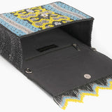 - Beaded fringed detailing at the base of the flap