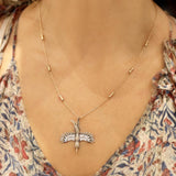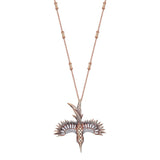 18k Rose Gold Encrusted Phoenix Necklace with White Diamond